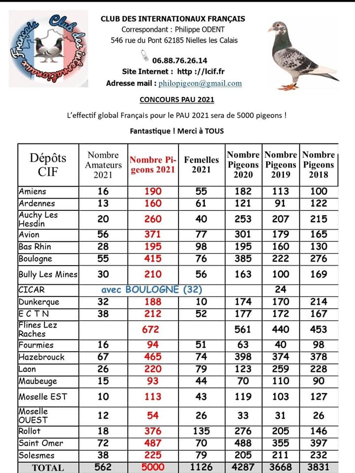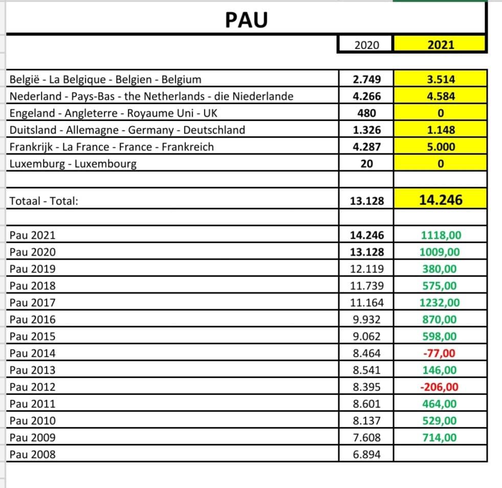 En/In 2020: 13.128 = + 1118 duiven/pigeons/tauben