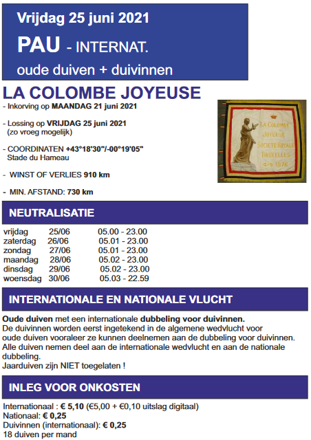 Belgique / Belgium 3.514 pigeons /Duiven - Annonces / Meldingen