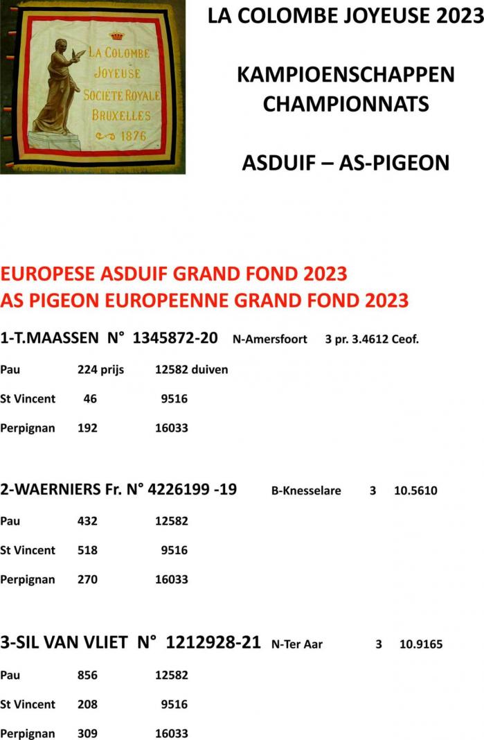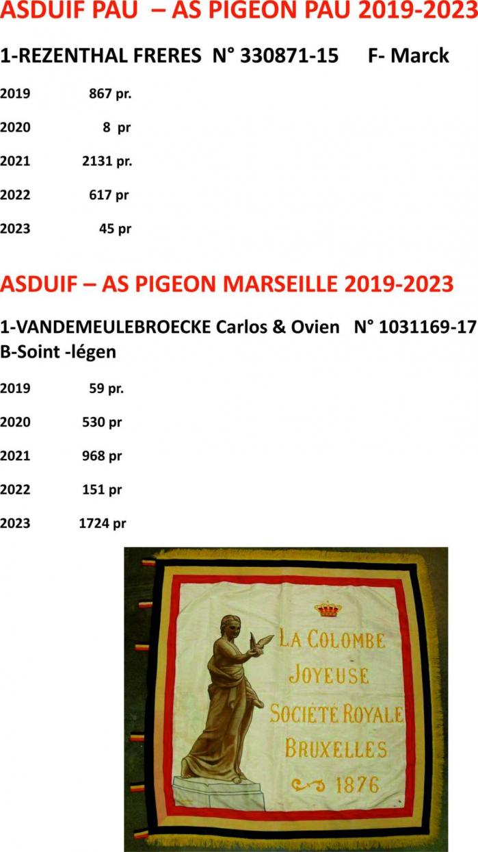 As Pigeon Européen 2023 & As Pigeon Pau 2019-2023 & Marseille 2019-2023