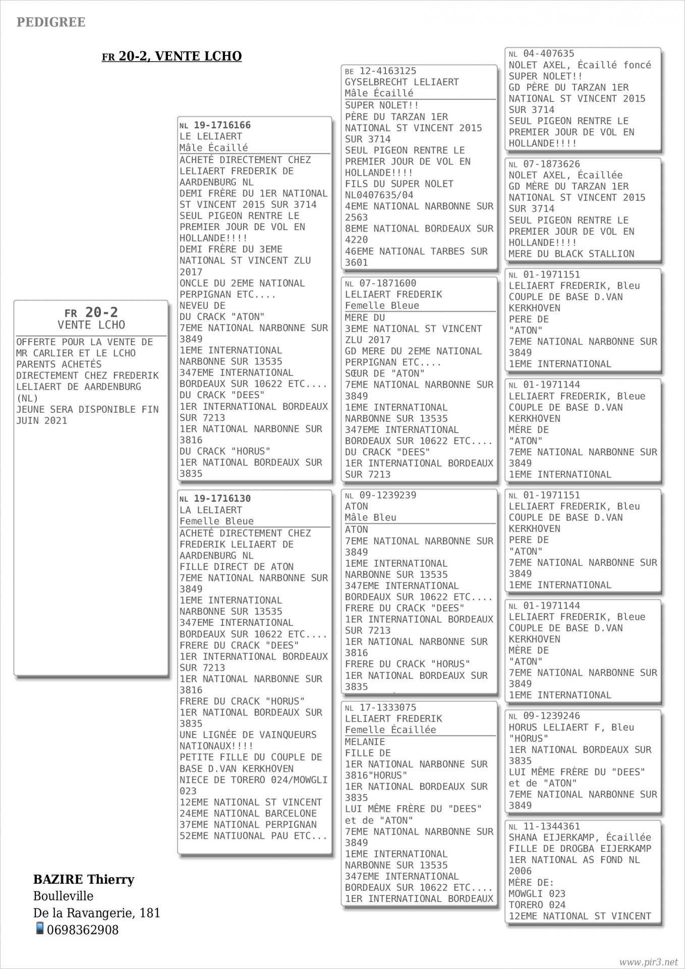 Origines en direct, Piet VAN DE MERWE ( Lance, Roméo , Julia , dream couple…) JOS THONE (fils du golden couple KIRIN X DWAIN, frères et sœur de TILLY etc… RAHIER N et C , et dernière introduction , les LELIAERT Frederik NL (lignée dès son DEES, HORUS, ATON etc….