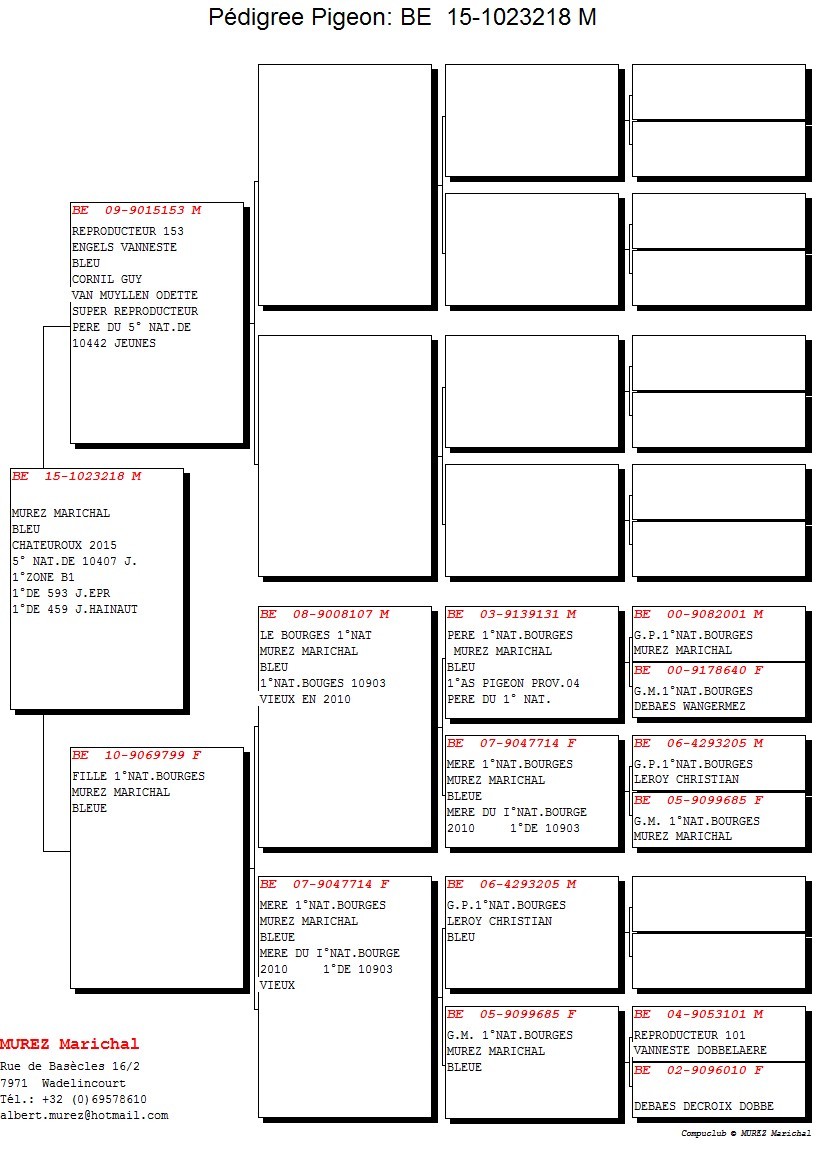 Colombophile depuis 1980 soit près de trente-cinq ans, Albert comme bon nombre de colombophile a hérité du virus par son papa & son grand-père, il joue en tandem avec son épouse depuis 2000 d’où l’appellation Murez-Marichal