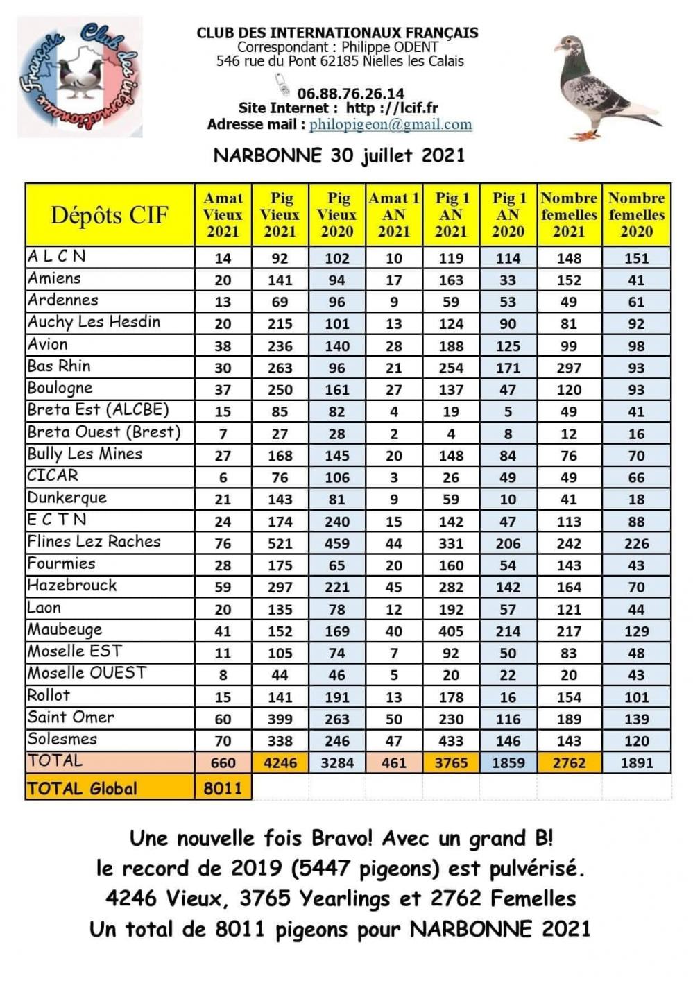 Contingents / Aantallen Narbonne France