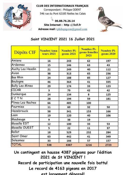 Contingents / Aantallen St Vincent France