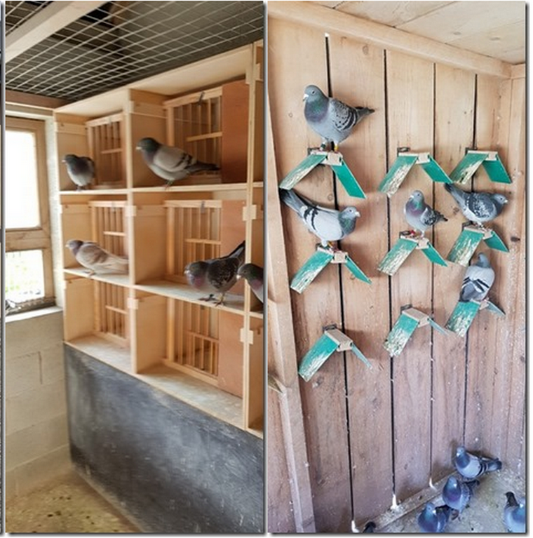 Les pigeons mâles, vieux et yearlings ainsi que les reproducteurs sont logés dans un colombier en dur attenant au corps de logis, les femelles de jeux et les jeunes de l’année sont eux dans un pigeonnier en bois sans luxe mais ou l’aération et l’hygiène sont optimales.