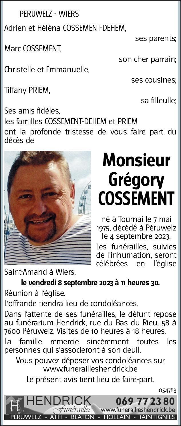 Je présente les condoléances de l'ensemble des visiteurs du site aux parents, à la famille & proches de Gregory Cossement