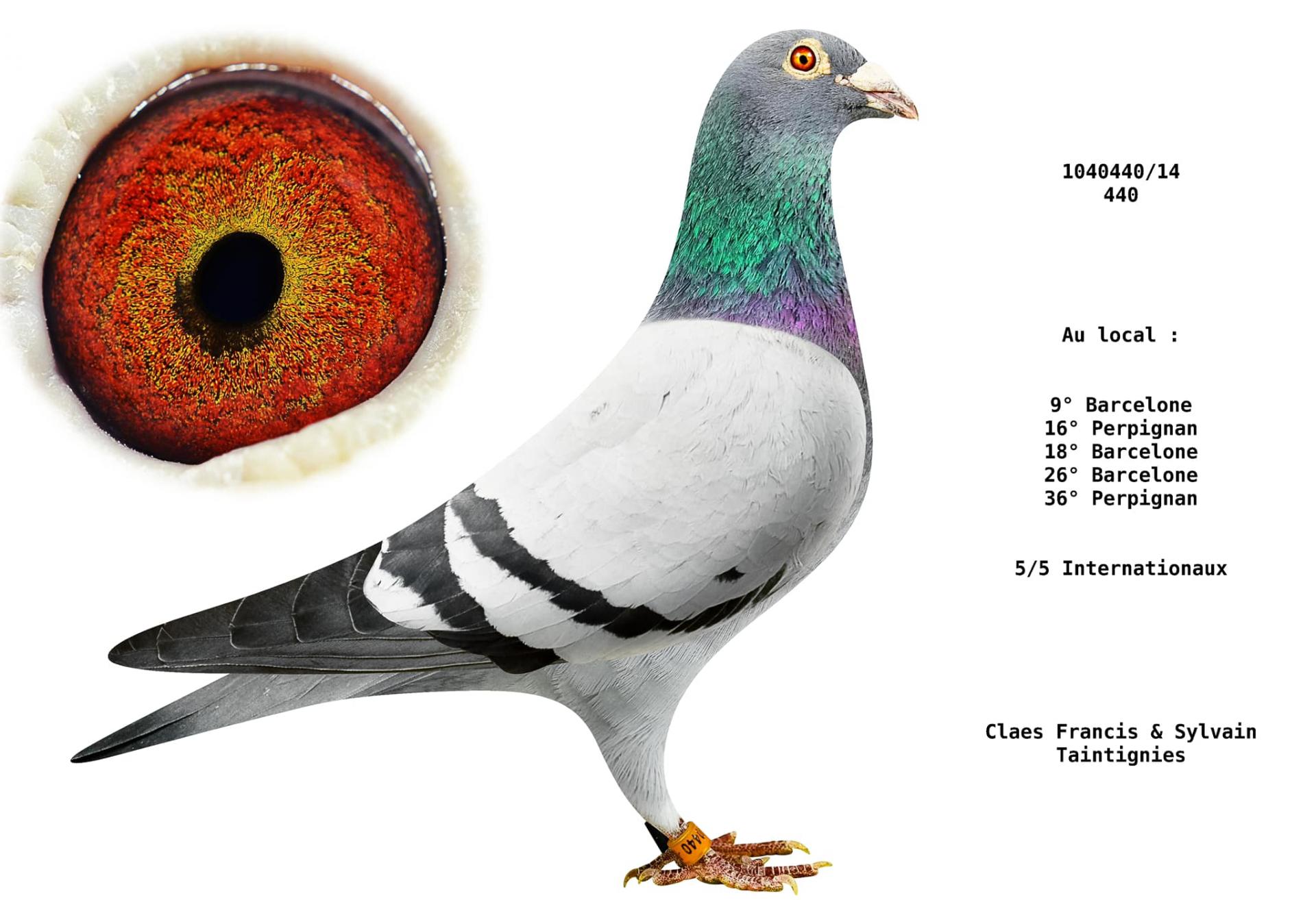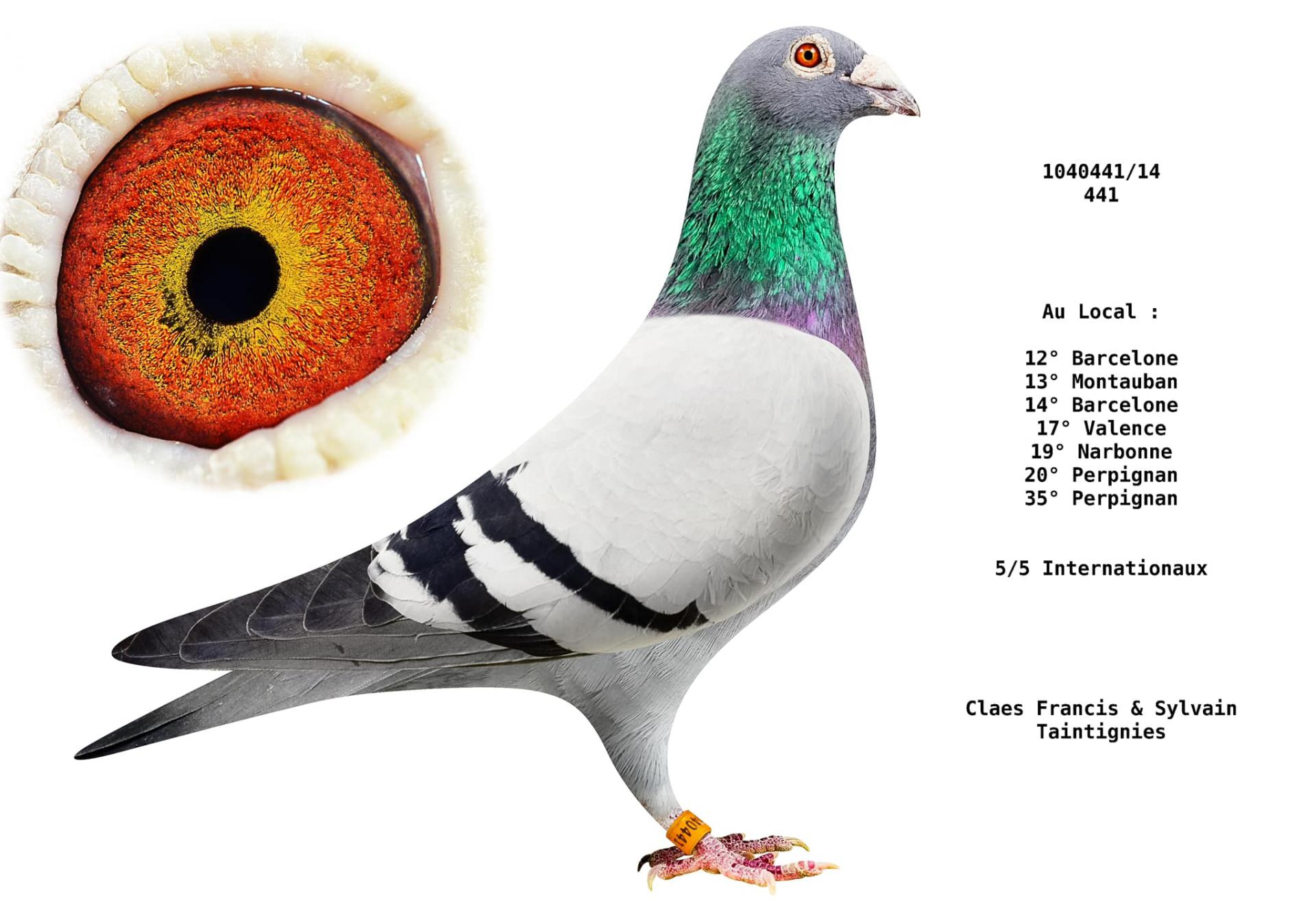 39e meilleur pigeon belge sur 3 internationaux, Pau – Saint Vincent – Perpignan (seuls, 43 classés dans cette catégorie reine).
