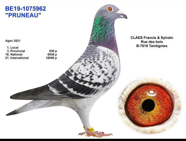 - Agen 02-07-21: 3e, ... Zone Wallonne 5/10 - 18e, ... National de 6.938 vieux - 21e, ... International 6/10 dans 18.056 vieux - 4/6 International 7.624 femelles