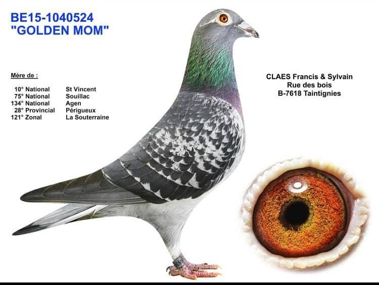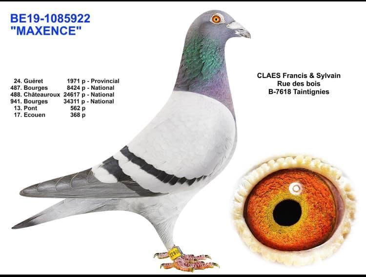 12e Meilleur pigeon belge sur Bourges en 2021 et 2020 - 3 prix