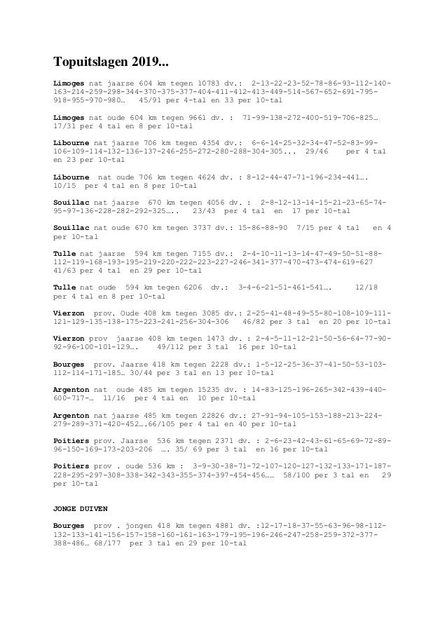 - 26 duiven wonnen top 15 op nationale vluchten