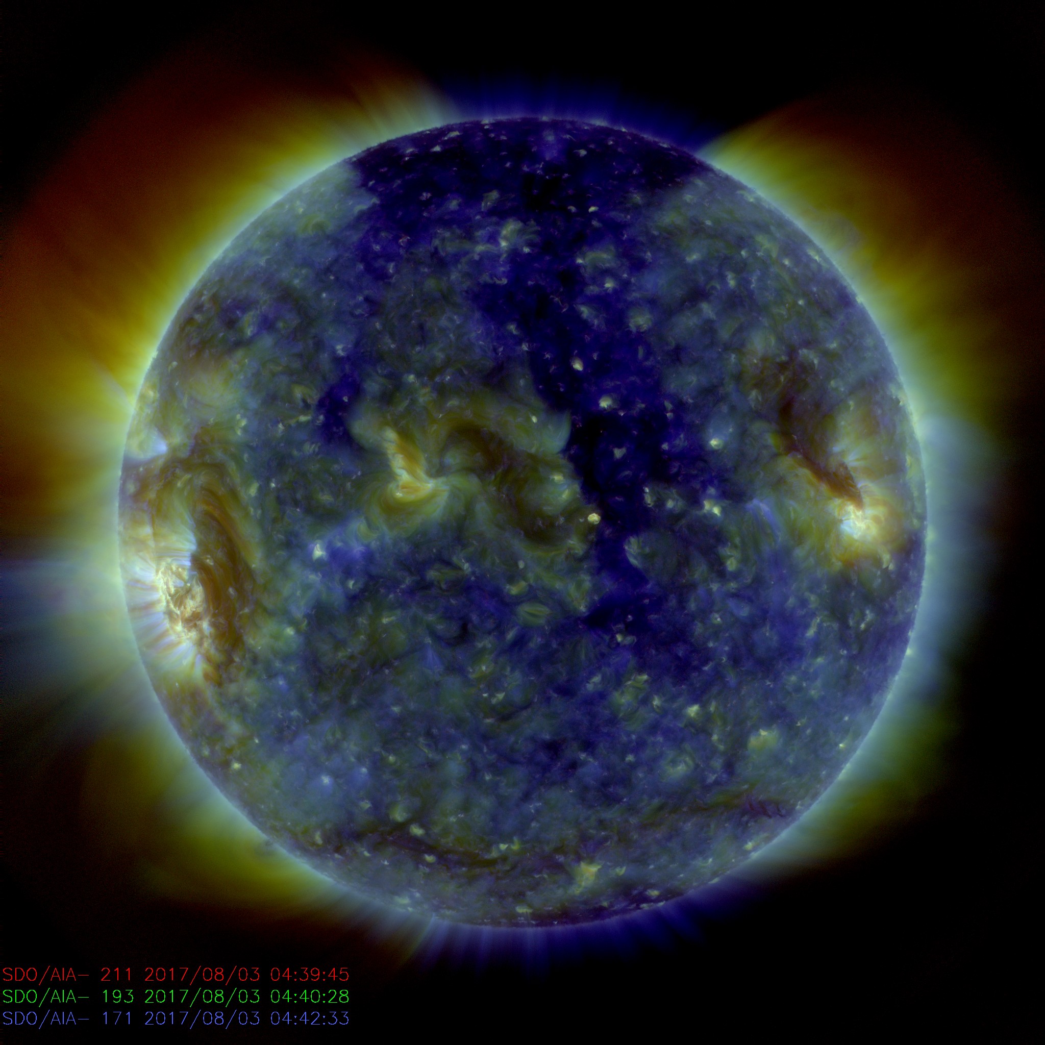 Le vent solaire coule d’un trou coronal en forme de canyon dans l’atmosphère du soleil. Les niveaux de tempête pourraient atteindre la catégorie G2 (modérément forte) le 4 août décrochant la catégorie G1 (mineur) le 5 août.