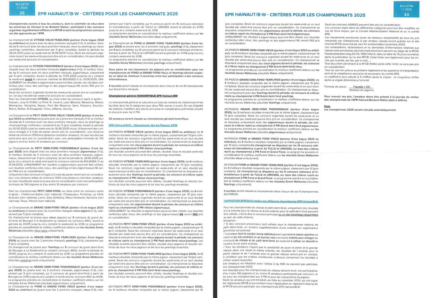 EPR Hainaut-Brabant wallon – Championnats 2025 – critères