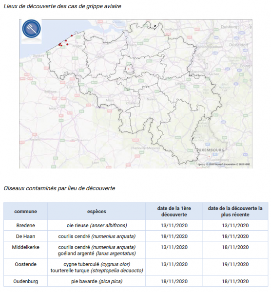 Grippe aviaire-Communiqué de l’AFSCA 20-11-20