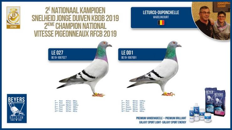 2e Kampioen National KBDB Snelheid Jonge Duiven - Champion National RFCB Vitesse Pigeonneaux 2019