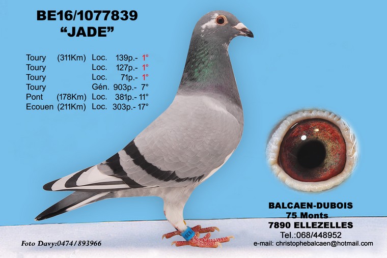 Que ce soit pour le championnat de vitesse "22e champion National RFCB vitesse jeunes 2016" ou pour l'as pigeons national "9e as pigeon National RFCB vitesse jeune 2016", ce sont des descendants de Blanco qui sont à l'origines du succès, comme ce fut déjà le cas en 2008 avec une 4e place au championnat national RFCB vitesse jeunes ou encore avec une 10e place au championnat national RFCB vitesse vieux en 2011, c'est dire si la base de la colonie Balcaen-Dubois est solide tant en qualité, qu'en constance dans les performances de pointe.