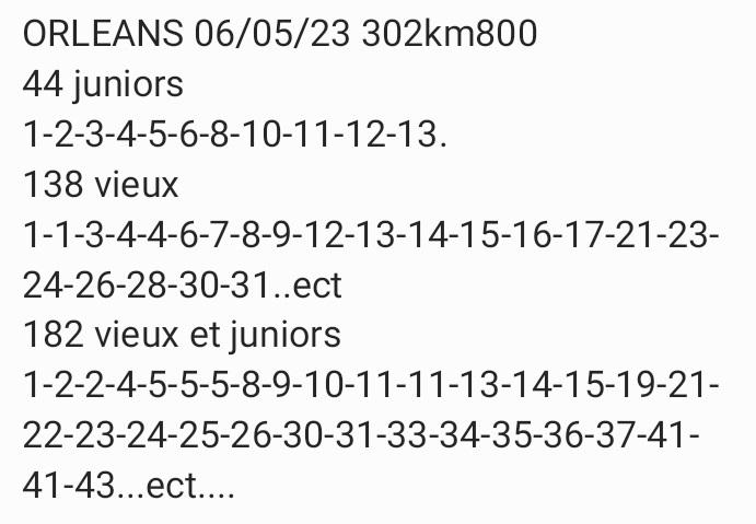 200 Vieux : 1-5-9-15-27-29-38-46-63. 9 de 15 & 74 Yearlings : 1-8-22 & 3 de 5