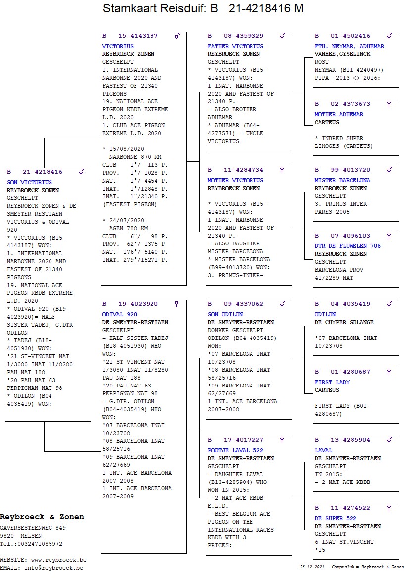 Pedigrée 21 4218416 FILS VENANT DU 1. INTERNATIONAL NARBONNE 2020