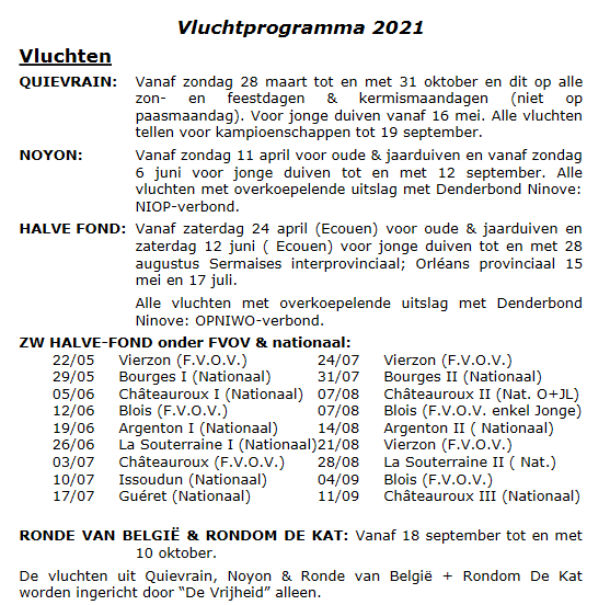 Datum: 18 oktober 2020 11de & laatste vlucht RONDOM DE KAT 2020 (Boom, beperkt): Jaarduiven