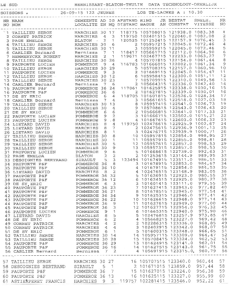 "Les Amis Réunis" THULIN 1.109.441 à 1.109.900 Contact:0479/097610