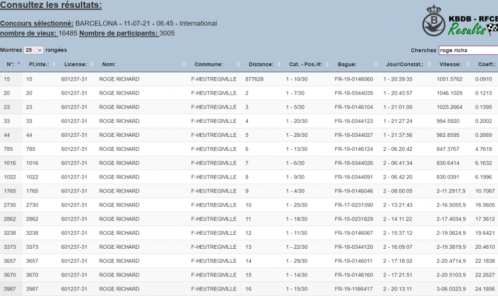 A l'International Richard Rogé classe 12 de ses 23 engagés dans les 13.274 participants, au niveau national ce sont les 9e, 52e, ... National dans 3.724p.