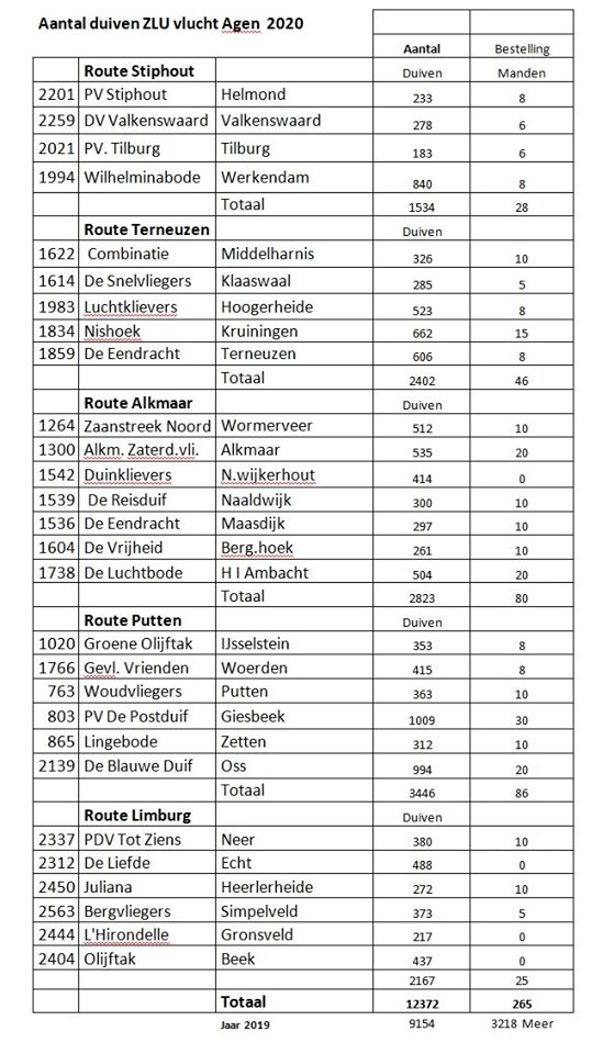 Oude duiven & Duivinnen / pour vieux & femelles internationa(a)l