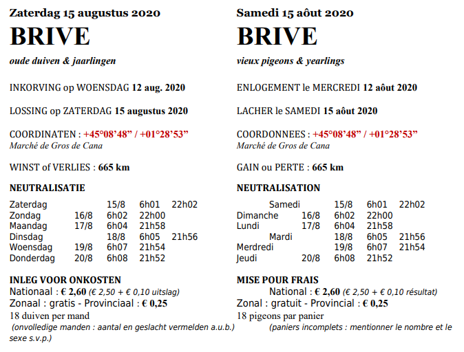 Lâcher /Los Vrijdag 31 juli 2020 Enlogement / Inkorving zondag 26 juli 2020