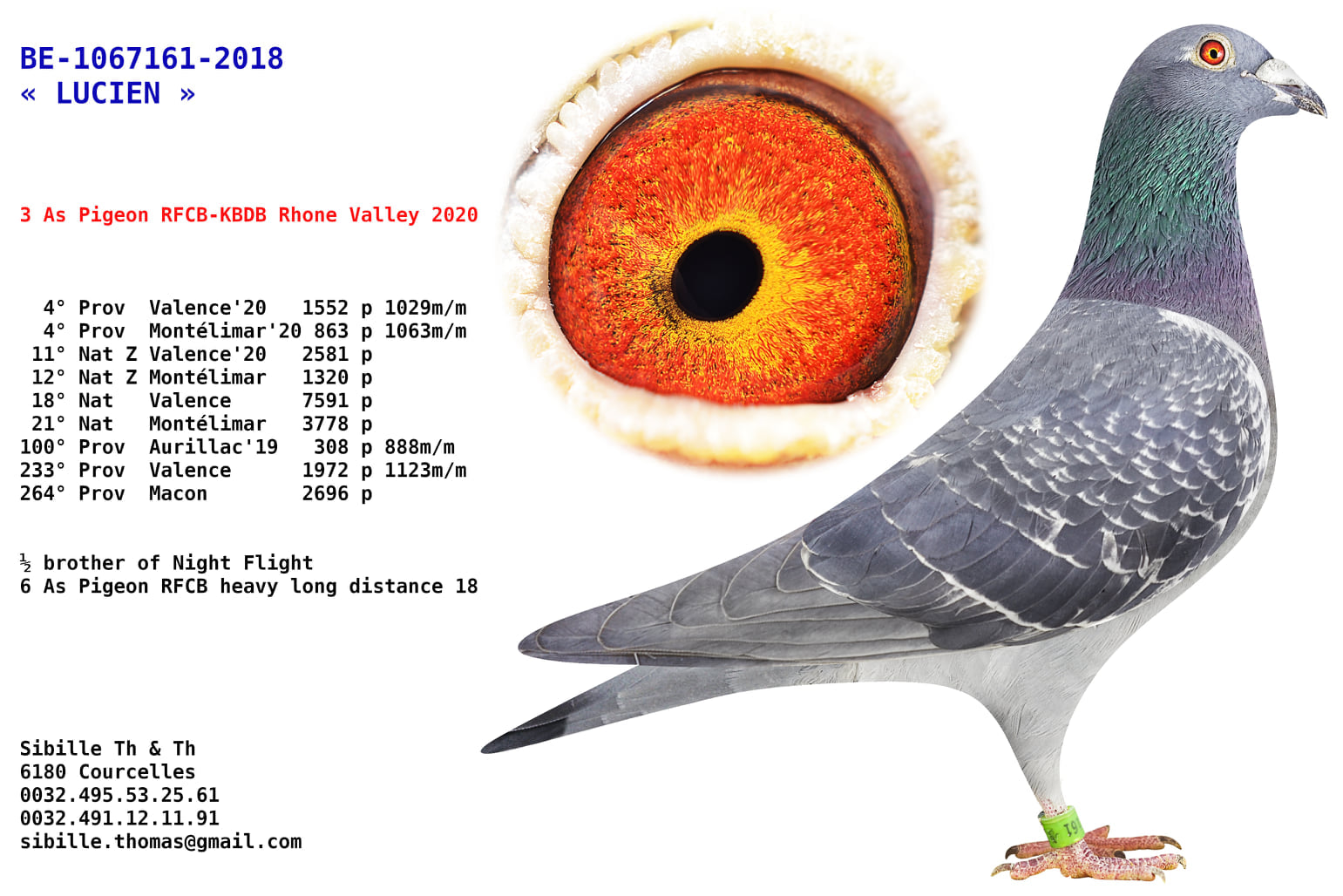 Sibille Thierry & Thomas 6e AS pigeons Ligne du Rhône PIPA Ranking 2021-3e meilleur pigeon belge sur Valence PIPA Ranking 2020-2021