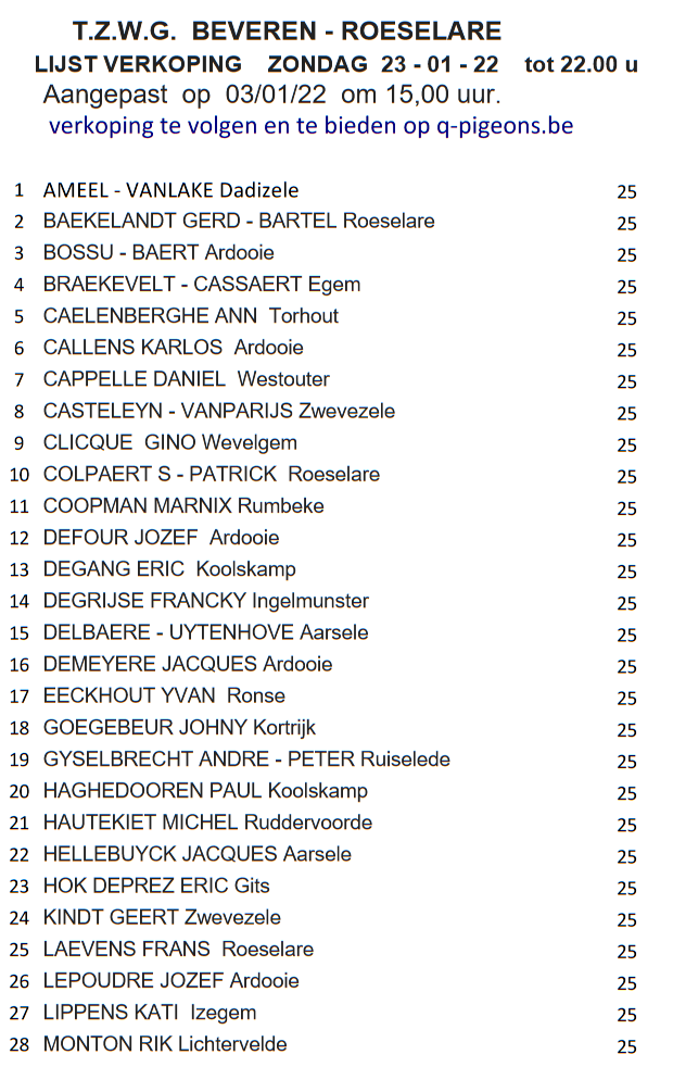 T.Z.W.G.BEVEREN - ROESELARE Bonnenverkoop